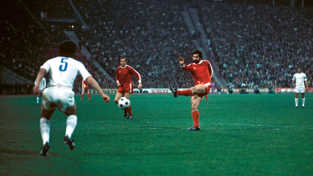 第42分钟,无人盯防的马丁内斯的射门被迈尔神勇化解,拜仁随即发动闪电反击,盖德·穆勒扳平比分。但这粒进球,没有留下任何影像资料。当电视转播还在回放马丁内斯的那次射门机会时,皮球已经滚入了球网。这粒历史性的进球,永远地消失在了时间里,只存在于现场12万名见证者的记忆之中。