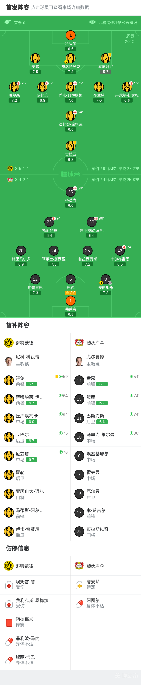 剑南春丨多特0-1勒沃库森,安德里希世界波,吉拉西射中横梁