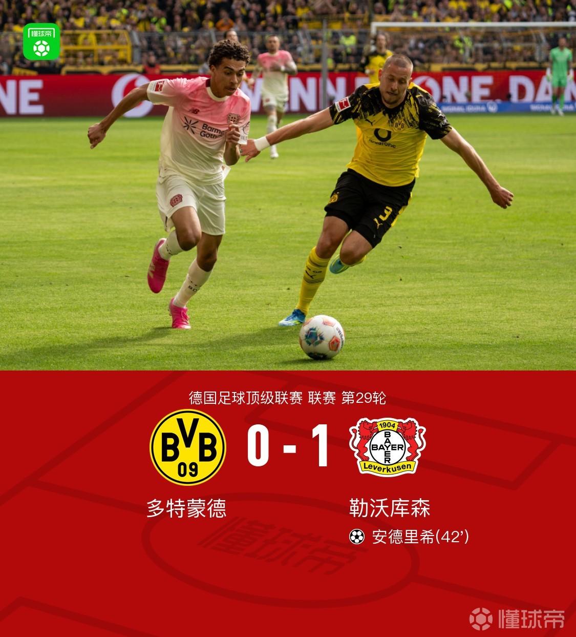 第42分钟,多特后场失误被断,安德里希世界波破僵,勒沃库森1-0领先