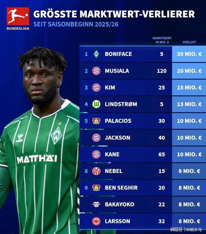 在最新一期的德甲身价跌幅榜上,博尼费斯身价暴跌3500万欧元,跌幅排名第一,其实他在半年前就是这个统计栏中的“头牌”。蝉联跌幅榜第一并不是耻辱,悲催的是,尼日利亚大块头并不清楚自己对足球的热情还能维持多久?